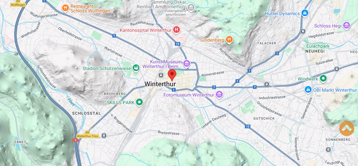 Winterthur (französisch Winterthour, lateinisch Vitudurum, umgangssprachlich kurz Winti genannt) ist mit 120'376 Einwohnern (31. Dezember 2024) die sechstgrösste Stadt der Schweiz und die zweitgrösste des Kantons Zürich. Die Stadt ist als politische Gemeinde auch Hauptort des Bezirks Winterthur. Winterthur war früher eine bedeutende Industriestadt und ist heute als Dienstleistungs-, Bildungs-, Kultur- und Freizeitzentrum mit 16 Museen bekannt. Der Bahnhof Winterthur bewältigt als Knotenpunkt die vierthöchste Passagierfrequenz der Schweiz; 15 Kilometer südwestlich liegt der Flughafen Zürich. Winterthur liegt in der Nordostschweiz an der Eulach und wird oft als Tor zur Ostschweiz bezeichnet. Winterthur und benachbarte Gemeinden bilden trotz der Nähe zu Zürich, das 20 Kilometer südlich liegt, eine eigene Agglomeration mit 149'376 Einwohnern (Stand 2022). Das spinnenförmig zwischen sieben bewaldeten Hügeln liegende Stadtgebiet wird im Süden von der Töss umflossen. Richtung Südosten erstreckt sich das als Erholungsgebiet beliebte obere Tösstal, während gegen Norden das teilweise noch stark landwirtschaftlich geprägte Zürcher Weinland anschliesst. Winterthur erhielt 1264 das Stadtrecht durch die Habsburger, jedoch waren die Grafen von Kyburg die eigentlichen Stadtgründer. In der ehemaligen Industriestadt sind die Unternehmen Sulzer, SLM und Rieter oder ihre Nachfolgeorganisationen bis heute tätig, jedoch nicht mehr in ihrer einstigen Grösse. Die Stadt ist heute auf den Dienstleistungssektor ausgerichtet und Sitz der AXA. Winterthur liegt in der Nordostschweiz nördlich von Zürich am Ausgang des (oberen) Tösstals und damit am Rande des Zürcher Oberlandes, das im Südosten liegt. Im Norden liegt das Weinland, das sich bis an den Rhein und nach Schaffhausen erstreckt. Das Stadtgebiet wird von den Flüssen Eulach, Töss und dem Mattenbach durchflossen; die Eulach und der Mattenbach sind über weite Strecken kanalisiert. Weil in Winterthur, abgesehen von wenigen Teichen, kein See vorhanden ist, beträgt der Gewässeranteil auf Gemeindegebiet gerade mal 0,9 Prozent. Die grosse Eulachschotterebene, in der die Stadt liegt, ist von mehreren bewaldeten Hügeln umgeben, die die Kernstadt von fast allen Seiten einrahmen (Eschenberg, Brüelberg, Wolfensberg, Lindberg). Im südlich des Stadtzentrums gelegenen Stadtwald Eschenberg befinden sich, auf zwei Lichtungen, eine Sternwarte und der Wildpark Bruderhaus. Am südlichen Rand des Lindbergwaldes liegt der Goldenberg, an dessen Hang Weinbau betrieben wird. Der höchste Punkt der Stadt ist der Hulmen in Richtung Schauenberg auf der Hörnlikette mit 687 Metern, der tiefste liegt an der Grenze zu Pfungen unterhalb der Kläranlage Hard mit 393 Metern. Die Stadt hat eine Waldfläche von 2766 Hektar, was 40,6 Prozent der Stadtfläche entspricht. Damit hat Winterthur im Vergleich zu anderen Schweizer Städten den höchsten Waldanteil. Aufgrund des grossen Gemeindegebiets ausserhalb des bebauten Gebiets beträgt der Anteil an Acker, Wiesen und Weiden 23,8 Prozent. Das tatsächlich bebaute Stadtgebiet beträgt lediglich 25,5 Prozent des Gemeindegebiets, die Verkehrsfläche 9,1 Prozent. 0,2 Prozent sind unproduktive Flächen (Stand 2018). |